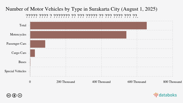 Surakarta City's motor vehicle count reached 653.82 thousand units as of August 2025, dominated by motorcycles. Data from ERI Korlantas Polri details vehicle types, with comparisons to other cities.