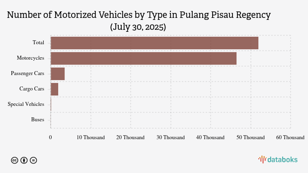 Pulang Pisau Regency had 51.95K motorized vehicles as of July 30, 2025, dominated by 46.42K motorcycles. Palangkaraya City has the most vehicles in Central Kalimantan, while Sukamara Regency has the l