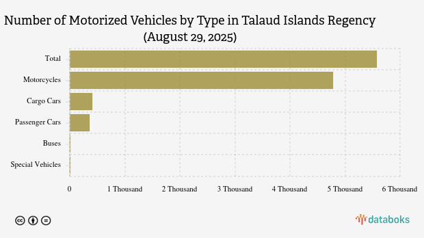In August 2025, Talaud Islands Regency had 5,579 motorized vehicles. Motorcycles accounted for 4,781 units, followed by cargo cars (409), passenger cars (364), buses (14), and special vehicles (8).