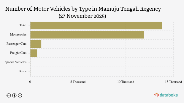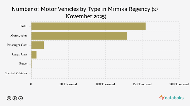 East Manggarai Regency recorded 23.54 thousand motor vehicles by Dec 2025, per Korlantas Polri. Motorcycles dominate with 20.46 thousand units, followed by cargo cars (1,611), passenger cars (1,249),