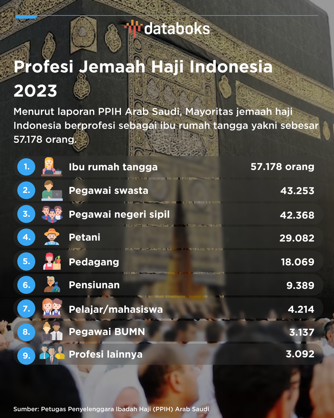 Inilah Profesi Jemaah Haji Indonesia 2023, Ibu Rumah Tangga Terbanyak