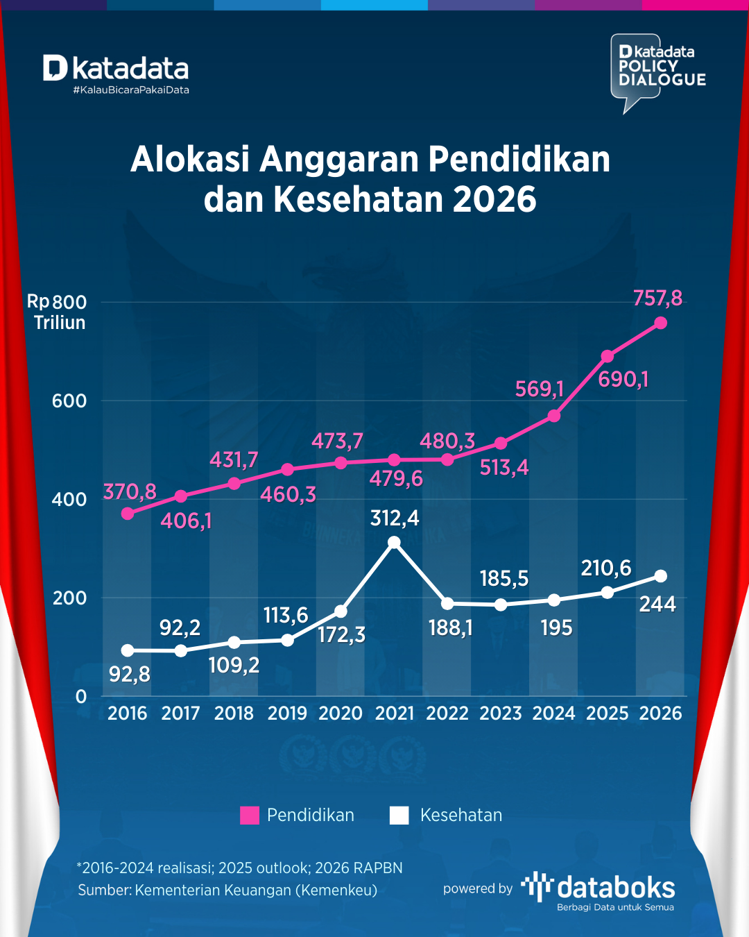 Kemudian alokasi anggaran kesehatan dalam RAPBN 2026 sebesar Rp244 triliun, meningkat 15,8% dari outlook anggaran serupa tahun 2025.