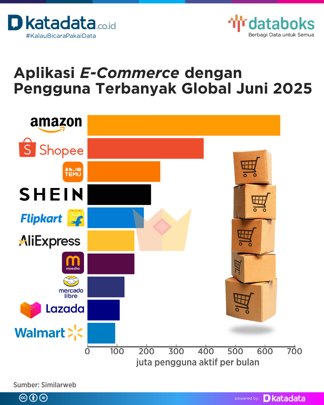 Menurut laporan Similarweb, Amazon adalah aplikasi e-commerce dengan pengguna terbanyak global sampai pertengahan 2025.