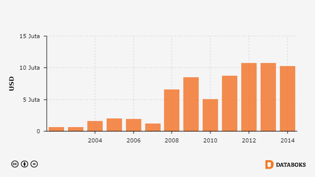 Nilai Ekspor Kepiting dan Kerang-Kerangan ke Taiwan 2002 - 2014