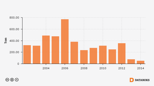 Volume Ekspor Kepiting dan Kerang-Kerangan Indonesia ke Kanada 2002 - 2014