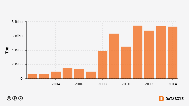 Volume Ekspor Kepiting dan Kerang-Kerangan Indonesia ke Taiwan 2002 - 2014