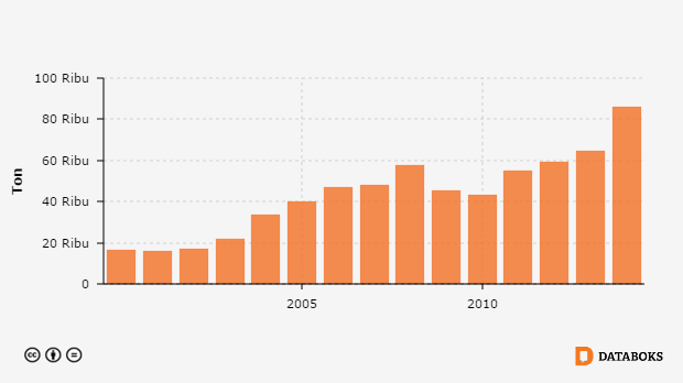 Volume Ekspor Udang dari Indonesia ke Amerika Serikat 2000 - 2014