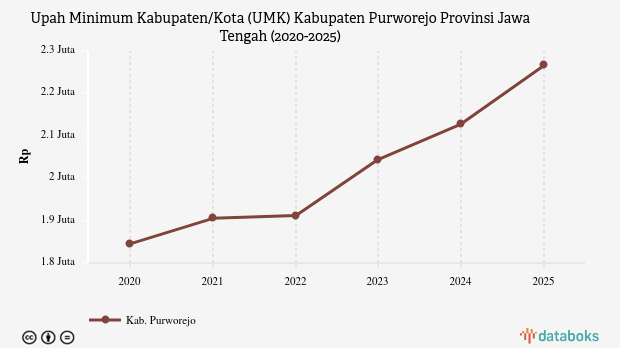 Merujuk data Badan Pusat Statistik (BPS) dan Pemerintah Daerah Jawa Tengah, Upah Minimum Kabupaten/Kota (UMK) Purworejo Rp2.265.938 pada 2025.