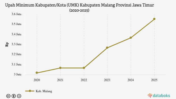Berdasarkan data Badan Pusat Statistik (BPS) dan Pemerintah Daerah Jawa Timur, Upah Minimum Kabupaten/Kota (UMK) Malang Kabupaten Rp3.553.530 pada 2025.