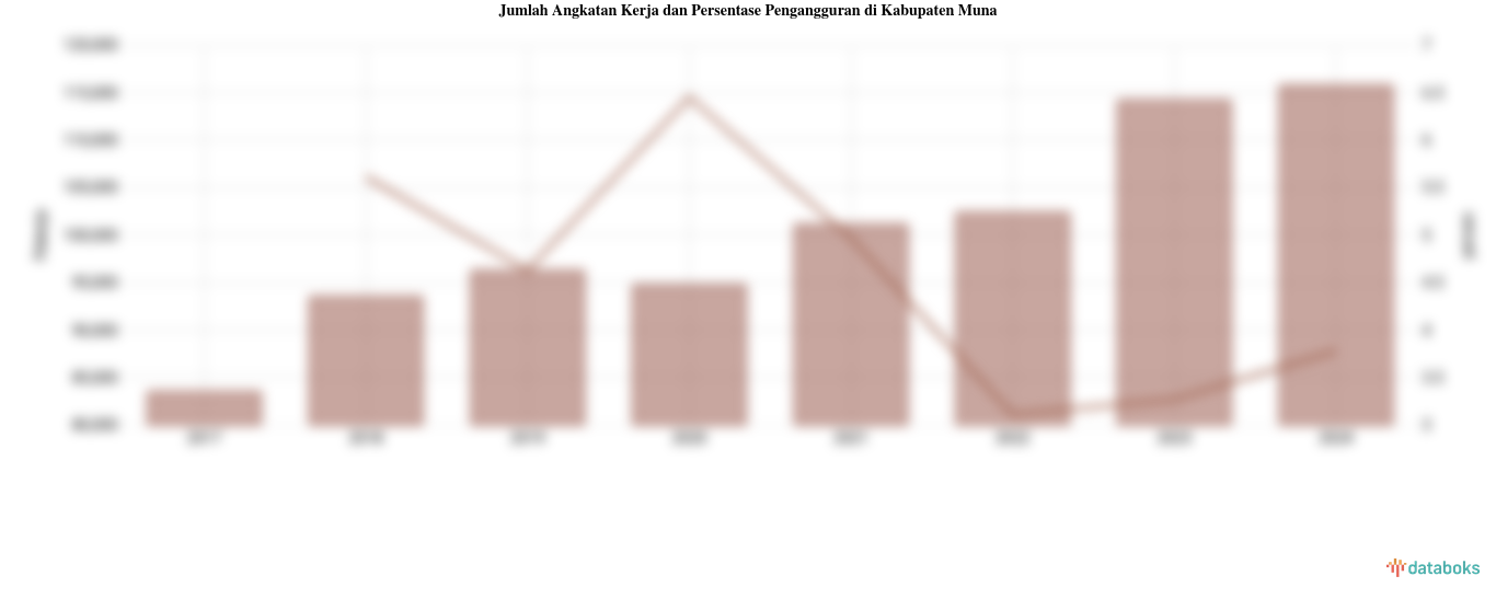 Naiknya tingkat pengangguran terbuka (TPT) tak terlepas dari data jumlah angkatan kerja di wilayah ini. Jumlah angkatan kerja di Kabupaten Muna mengalami trend penurunan dalam 17 tahun terakhir. Tercatat pada tahun 2022 jumlah angkatan kerja sebanyak 102,37 ribu pekerja, kemudian jumlahnya naik dari tahun sebelumnya sebanyak 1.548 pekerja menjadi 115,74 ribu pekerja pada tahun 2024.