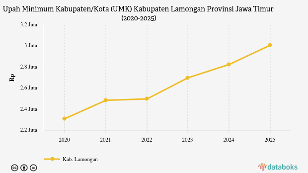 Melansir data Badan Pusat Statistik (BPS) dan Pemerintah Daerah Jawa Timur, Upah Minimum Kabupaten/Kota (UMK) Lamongan Rp3.012.164 pada 2025.
