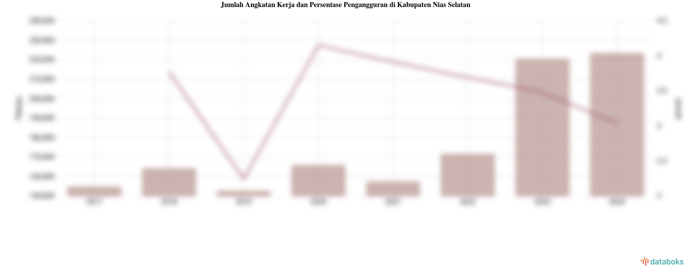 Berkurangnya data tingkat pengangguran terbuka (TPT) ini, tercermin dari angka penduduk yang bekerja dan jumlah angkatan kerja yang dipublish BPS tahun ini. Jumlah angkatan kerja di Kabupaten Nias Selatan mengalami trend kenaikan dalam 17 tahun terakhir sedangkan dalam lima tahun terakhir, jumlah angkatan kerja dalam tren naik. Tercatat pada tahun 2022 jumlah angkatan kerja sebanyak 171,17 ribu pekerja dan di tahun 2024 naik menjadi 223 ribu pekerja.