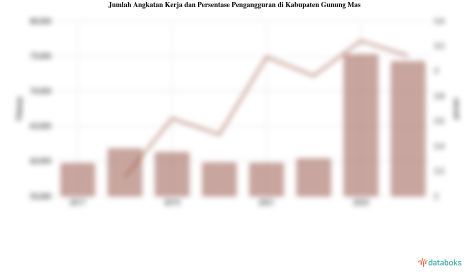 Pengurangan data tingkat pengangguran terbuka (TPT) tahun ini bisa tergambar dari kondisi jumlah angkatan kerja dan jumlah penduduk yang bekerja. Jumlah angkatan kerja di Kabupaten Gunung Mas dalam tiga tahun terakhir menurun. Secara historis, tahun 2022 tercatat 60.252 pekerja, pada 2023 kemudian meningkat menjadi 75.100 pekerja dan untuk 2024 tercatat sebanyak 74.120 pekerja.