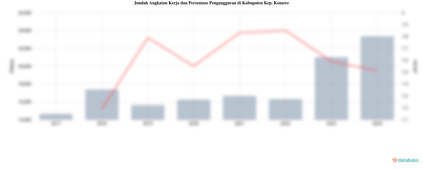 Pengurangan data tingkat pengangguran terbuka (TPT) tahun ini bisa tergambar dari kondisi jumlah angkatan kerja dan jumlah penduduk yang bekerja. Jumlah angkatan kerja di Kabupaten Kep. Konawe dalam tiga tahun terakhir mengalami peningkatan. Secara historis, tahun 2022 tercatat 16.242 pekerja, pada 2023 kemudian meningkat menjadi 20.944 pekerja dan untuk 2024 tercatat sebanyak 23.296 pekerja.