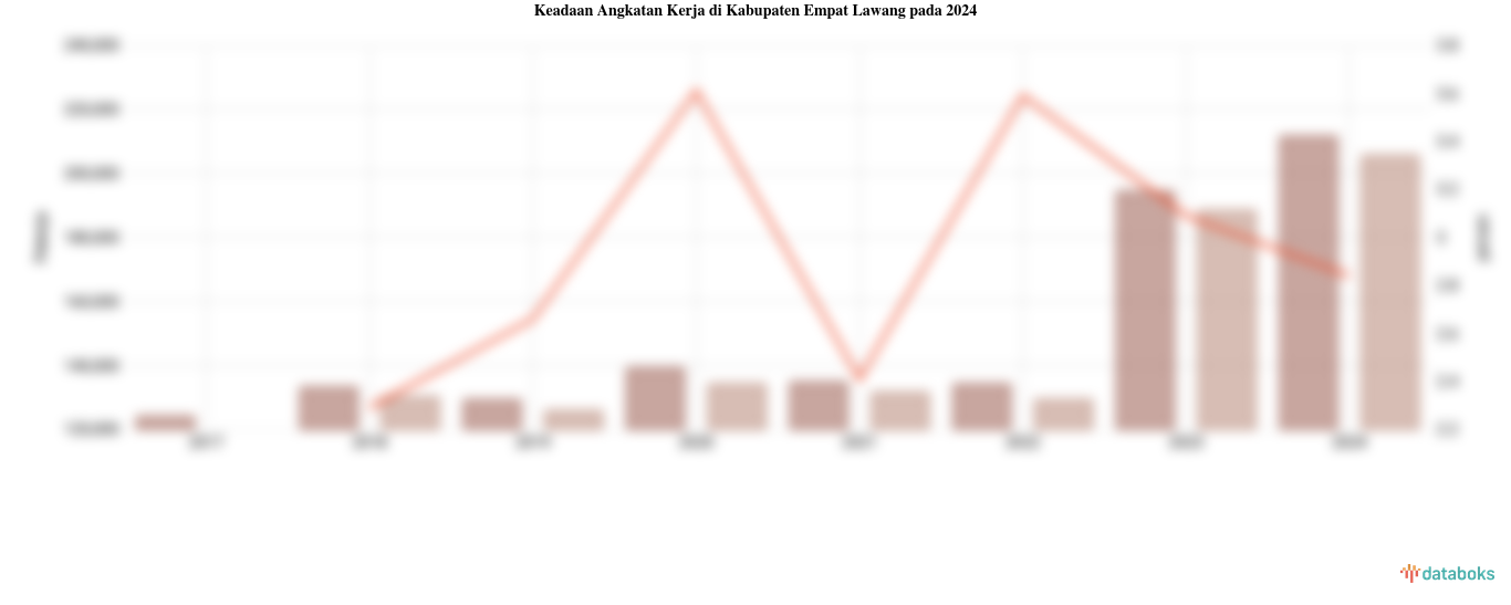 Jumlah pekerja di Kabupaten Empat Lawang dalam tiga tahun terakhir mengalami peningkatan. Secara historis, tahun 2022 tercatat 129,31 ribu pekerja, pada 2023 kemudian meningkat menjadi 188,36 ribu pekerja dan untuk 2024 tercatat sebanyak 205,55 ribu pekerja.