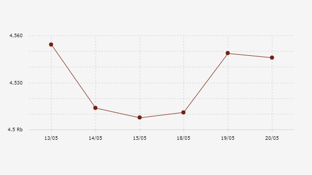 Indeks Harga Saham Gabungan (IHSG) ditutup melemah ke zona merah pada akhir perdagangan hari ini, Rabu (20/05). Pada pukul 16.00 WIB, IHSG ditutup melemah 2,71 poin (0,06%) ke level 4.545,95.