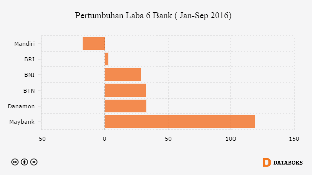 Bank besar lainnya seperti Bank Danamon, Bank BTN, Bank BNI dan Bank BRI juga mampu mencetak pertumbuhan laba periode Jan-Sep 2016 dibandingkan periode yang sama 2015.