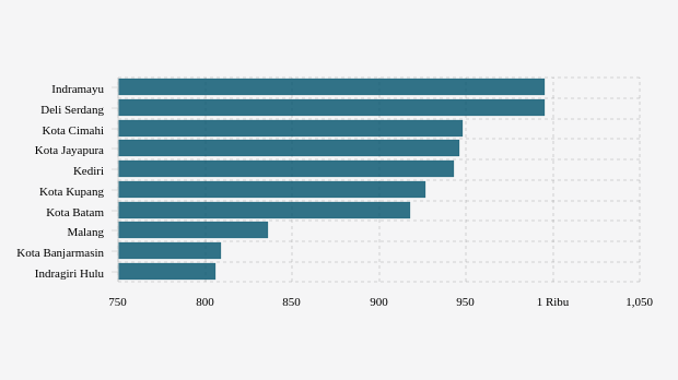 Urutan lima teratas dimulai dari yang terbesar untuk jumlah spesimen diperiksa spesimen per minggu yakni Indramayu (995 spesimen), Deli Serdang (995 spesimen), kota Cimahi (948 spesimen), kota Jayapura (946 spesimen) dan Kediri (943 spesimen).