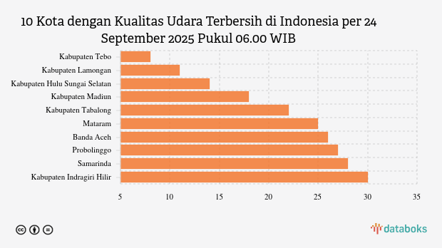 Berikut daftar lengkap 10 kota dengan kualitas udara paling bersih di Indonesia menurut KLHK pada Rabu, 24 September 2025 pukul 06.00 WIB.