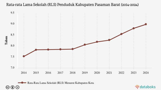 RLS tersebut menunjukkan rata-rata penduduk Pasaman Barat hanya sekolah sampai jenjang kelas VIII. RLS itu lebih baik dari rata-rata RLS nasional yang 8,85 tahun pada 2024.