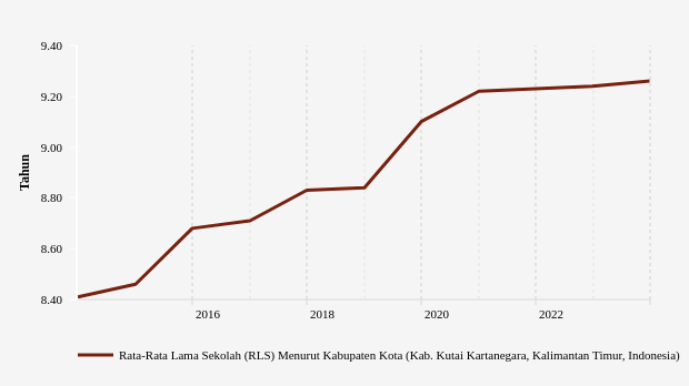 RLS tersebut menunjukkan rata-rata penduduk Kutai Kartanegara hanya sekolah sampai jenjang kelas IX. RLS itu lebih baik dari rata-rata RLS nasional yang 8,77 tahun pada 2023.