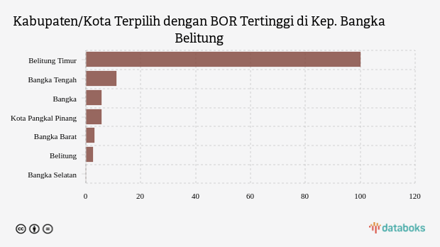 Belitung timur adalah kabupaten di urutan pertama dengan BOR tertinggi sebesar 100 persen. Kondisi BOR di kabupaten ini terlihat belum membaik karena terjadi peningkatan dibandingkan pekan sebelumnya yang tercatat 42,86 persen.