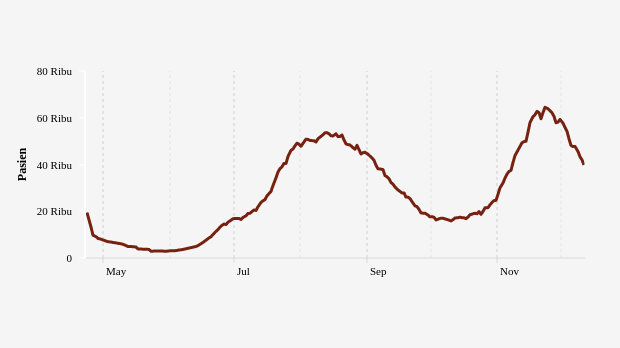 Kasus aktif Covid-19 di Indonesia hari ini turun. Berdasarkan laporan Satgas Penanganan Covid-19, jumlah kasus aktif Covid-19 di Indonesia kini ada 39.809 kasus aktif per Minggu, 11 Desember 2022.