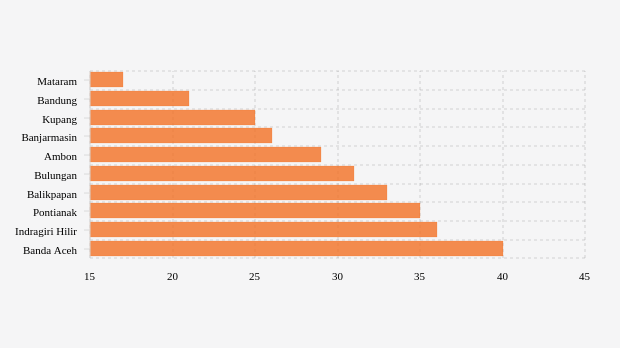 - Kupang (Nusa Tenggara Timur): 25