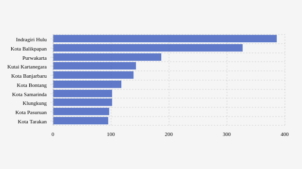Urutan lima teratas dimulai dari yang terbesar untuk persentase orang diperiksa per minggu yakni Indragiri Hulu (385,71%), kota Balikpapan (326,55%), Purwakarta (186,34%), Kutai Kartanegara (142,98%) dan kota Banjarbaru (138,57%).