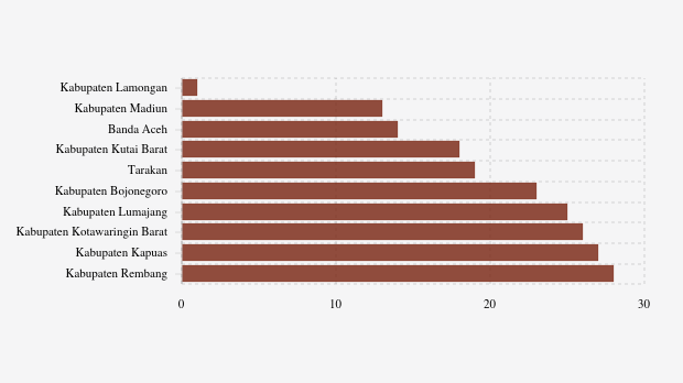 - Kabupaten Kotawaringin Barat (Kalimantan Tengah): 26