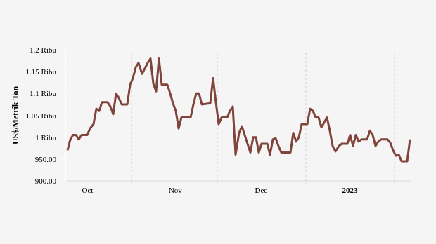 Harga CPO Tiga Bulan Terakhir Data per Senin, 06 Februari 2023