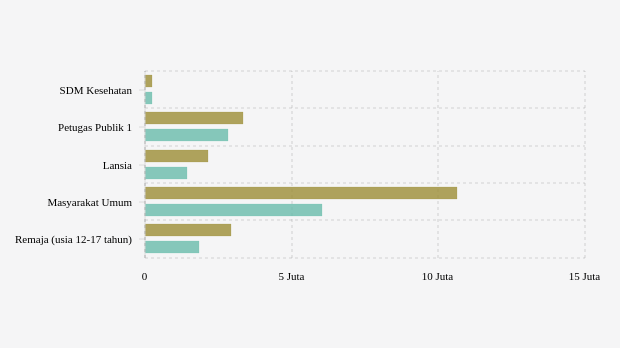 Vaksinasi ke masyarakat umum yang rentan ditargetkan sebanyak 19,3 juta jiwa. Pada dosis 1, vaksinasi dilaporkan telah diberikan sebanyak 10,65 juta jiwa (55,41 persen target). Sedangkan untuk vaksinasi dosis 2 baru tercapai 31,44 persen atau 6,03 juta jiwa.