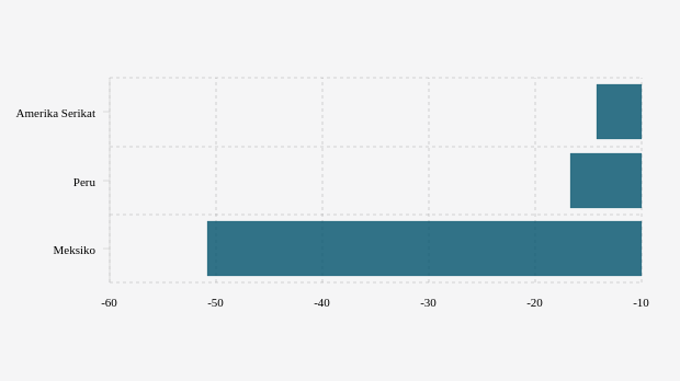 Menyusul Peru dengan pertumbuhan kematian secara mingguan mencapai -16,67 persen. Sedangkan untuk data harian angka kematian di negara ini turun 46,43% dibanding hari sebelumnya yang tercatat 28 jiwa.