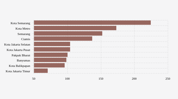 Kota Semarang berada di urutan pertama. Persentase orang diperiksa per minggu di tempat ini tercatat 224,16 persen. Adapun angka positive rate terakhir adalah 7,68 persen. Positive rate di wilayah ini naik dibandingkan persentase pada pekan sebelumnya.