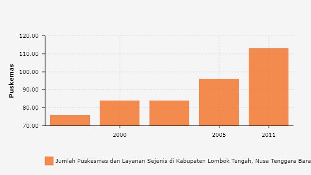 Jumlah Puskesmas dan Layanan Sejenis di Kabupaten Lombok Tengah, Nusa Tenggara Barat 1996 - 2011