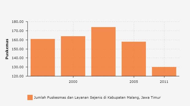Jumlah Puskesmas dan Layanan Sejenis di Kabupaten Malang, Jawa Timur 1996 - 2011