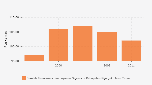 Jumlah Puskesmas dan Layanan Sejenis di Kabupaten Nganjuk, Jawa Timur 1996 - 2011