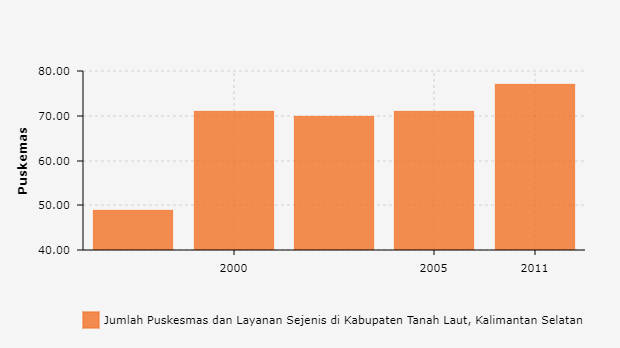 Jumlah Puskesmas dan Layanan Sejenis di Kabupaten Tanah Laut, Kalimantan Selatan 1996 - 2011