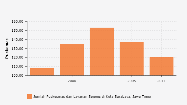 Jumlah Puskesmas dan Layanan Sejenis di Kota Surabaya, Jawa Timur 1996 - 2011