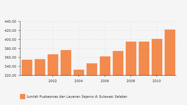 Jumlah Puskesmas dan Layanan Sejenis di Sulawesi Selatan 1996 - 2011