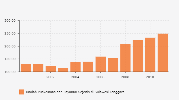 Jumlah Puskesmas dan Layanan Sejenis di Sulawesi Tenggara 1996 - 2011
