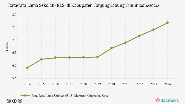 Rata-rata Lama Sekolah (RLS) di Kabupaten Tanjung Jabung Timur (2014-2024)