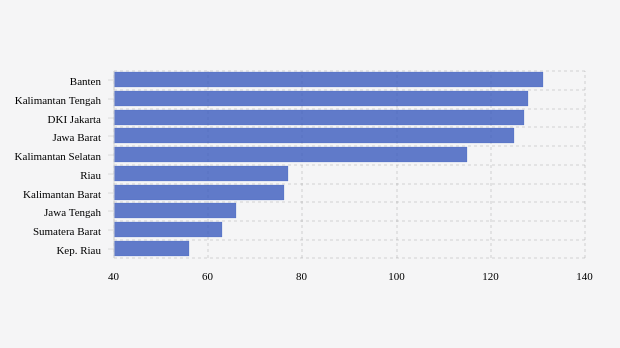 Di bawah Banten, ada Kalimantan Tengah yang menempati posisi kedua terburuk di Indonesia dengan indeks kualitas udara 128. Kemudian, di posisi ketiga ada DKI Jakarta dengan indeks kualitas udara 127.
