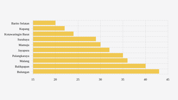 Berikut daftar lengkap 10 kota dengan kualitas udara paling bersih di Indonesia.