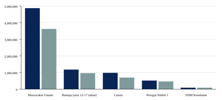 Vaksinasi ke masyarakat umum yang rentan ditargetkan sebanyak 2,9 juta jiwa. Pada dosis 1, vaksinasi dilaporkan telah diberikan sebanyak 4,88 juta jiwa (168,53 persen target). Sedangkan untuk vaksinasi dosis 2 baru tercapai 125,34 persen atau 3,63 juta jiwa.