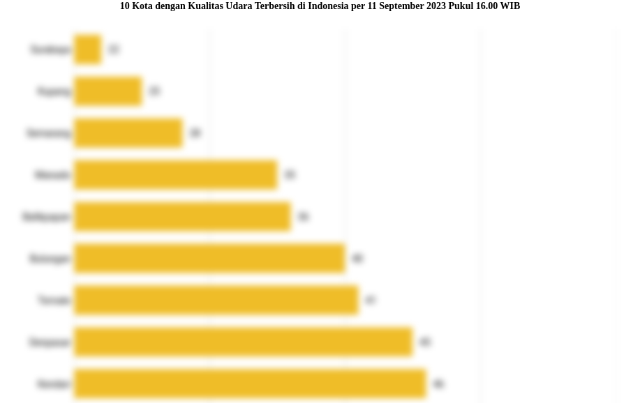 Daftar 10 kota dengan kualitas udara paling bersih di Indonesia pada Senin (11/09) pukul 16.00 WIB.