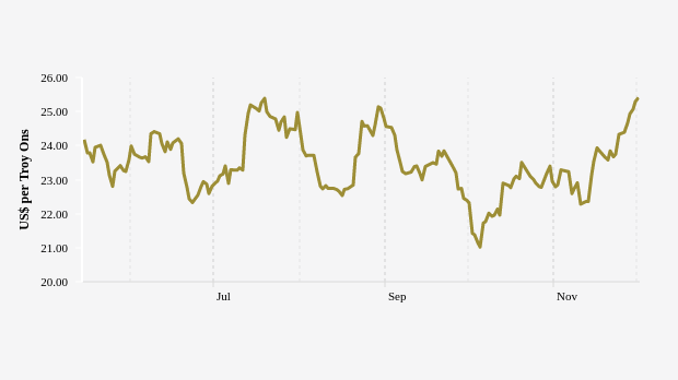 Harga Perak Tiga Bulan Terakhir