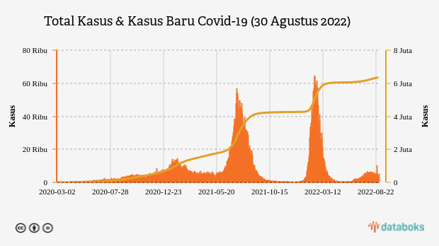 Pasien positif Covid-19 bertambah 5.070 orang per 30 Agustus 2022. Dengan tambahan tersebut, saat ini total kasus Covid-19 di Indonesia telah mencapai 6.354.245.