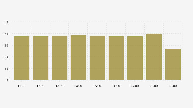 Konsentrasi PM2.5 udara Jakarta terendah berada di level 26,7 µg/m³ pada pukul 19.00 WIB, sedangkan konsentrasi PM2.5 tertinggi pada pukul 18.00 WIB dengan nilai 39,6 µg/m³.
