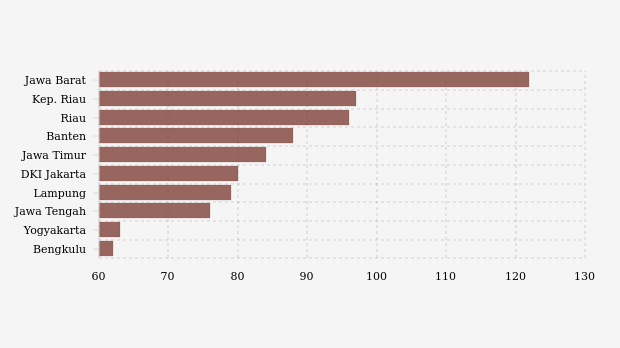 Di bawah Jawa Barat, ada Kep. Riau yang menempati posisi kedua terburuk di Indonesia dengan indeks kualitas udara 97. Kemudian, di posisi ketiga ada Riau dengan indeks kualitas udara 96.
